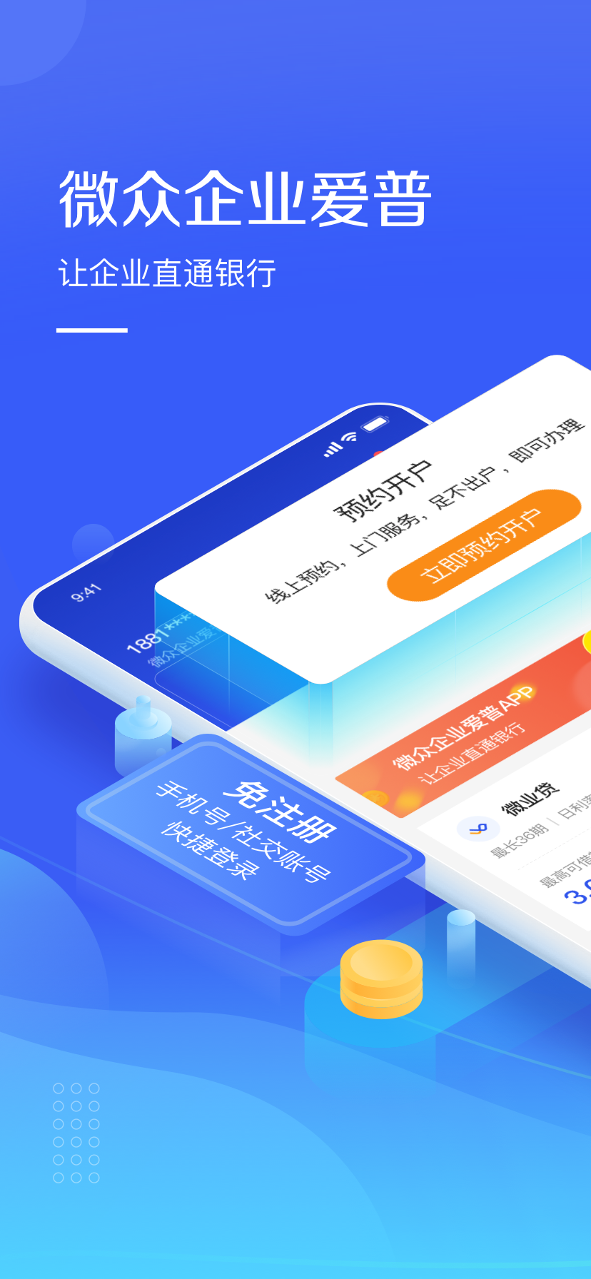 “微众企业爱普”APP聚合了为小微企业定制的互联网智能融资服务、便捷账户服务、小微现金管理及第三方增值服务,未来还将通过数据挖掘、机器学习、云计算等洞察需求、精准推荐,满足差异化金融需求、降低企业成本,实现手机一点、银行随身。