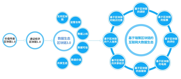 瑞策科技拥有区块链创新技术:"业务数据结构化上链",将数据之间的关联和属性保存到区块链上,保证数据过程的可信,使业务数据像区块链中的交易余额一样可信、不可篡改。瑞策科技利用自由知识产权的区块链系统,通过建立行业联盟链的方式来推进区块链的落地,正在建设中的包括:调研联盟链、互联网联盟链、电商联盟链和环保联盟链,联合行业中扮演重要角色的公司利用区块链技术对行业进行升级。其中,瑞策科技重点运营的互联网联盟链,聚焦于区块链在互联网行业的落地,建立互联网企业联盟,通过已有互联网应用”微愿”的链改、自建新的DApp、联合第三方DApp的方式构建基于瑞策联盟链的互联网大数据生态,解决传统互联网应用的数据不可信、易篡改等问题,包括但不限于:投票、评价、电商、自媒体、共享经济、信用、知识付费、调研等场景。区块链在互联网行业的应用,将开启一个全新的时代,真正使区块链技术为大众所熟知,区块链应用的百家争鸣时代即将到来,众多杀手级应用会自此播下种子,将区块链技术带入平民百姓家。